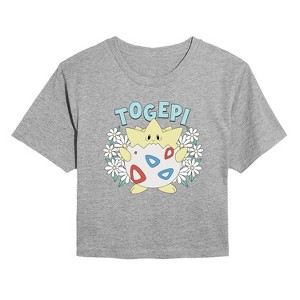 Women's Pokémon Floral Togepi Cropped Graphic T-Shirt - Heather Grey - X-Large