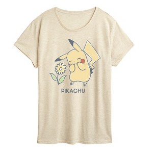 Pokémon - Pikachu Flowers - Women's Short Sleeve Graphic T-Shirt - Celebrate the essence of Pokemon's Pokémon with officially licensed apparel featuring unique designs crafted exclusively by Hybrid Apparel. Each piece brings beloved characters, iconic imagery, and memorable moments to life, offering Pokémon fans a one-of-a-kind way to showcase their passion.