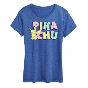 Pokémon - Pikachu Pastel Name - Women's Short Sleeve Graphic T-Shirt - Celebrate the essence of Pokemon's Pokémon with officially licensed apparel featuring unique designs crafted exclusively by Hybrid Apparel. Each piece brings beloved characters, iconic imagery, and memorable moments to life, offering Pokémon fans a one-of-a-kind way to showcase their passion.