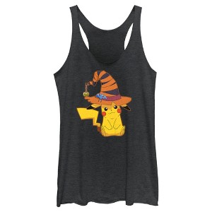 Women's Pokemon Halloween Pikachu Witch Hat Racerback Tank Top - 1 of 4