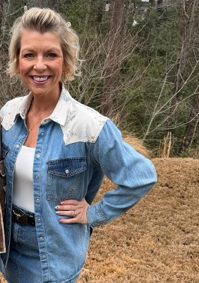 Completely obsessed with this top!! I was expecting to size down to a L as I had read it was oversized, but ended up loving the way the M fit!! Not too heavy, love the snaps, and the embroidered flowers on sleeves are such a cute bonus!