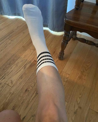 [This review was collected as part of a promotion.] This review is for an 5 pack of women’s crew length socks. They are ribbed. One pair is solid white one pair is solid black. Another pair is black with white stripes, and the other is white with black stripes. Lastly, there is a white pair with the heel and toe in black. I wear a size 6.5 in women’s shoes and the socks fit me perfectly. They are comfortable and an excellent value. This item Felt true to size and the width Felt true to width. I received an incentive to write this review.