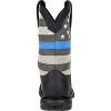 Want to show your support and give back to the Public Service Industry? The Rocky Blue Line Women's Western Boot was designed with the idea of comfort and giving back in mind. The eight-layer comfort system was created so each element and layer offers additional comfort, from the orthotic element to the outsole. When you wear these comfortable ladies' western boots, you can work, walk or stand all day.Not only are these boots comfortable, the quality is even better! These western boots are made of full-grain leather and are 10-inches tall. Made with a durable all-around welt construction and double-row welt stitch this provides extra strength and longevity to this family of boots.For every pair of Rocky Blue Line boots sold, Rocky will donate a portion of each sale to the Stephen Siller Tunnels to Towers Foundation. This foundation helps support the families of fallen officers. Show your support for the Public Service industry today and get yourself a pair of Blue Line Western Boots!