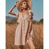 Women's Ruffle Babydoll Dress Short Sleeve V Neck High Waist Botton Casual Loose Flowy Swing Pleated Tunic Dress