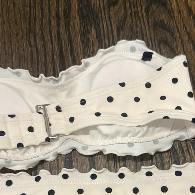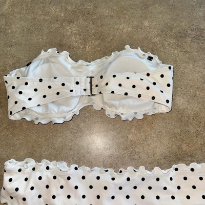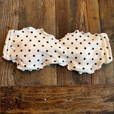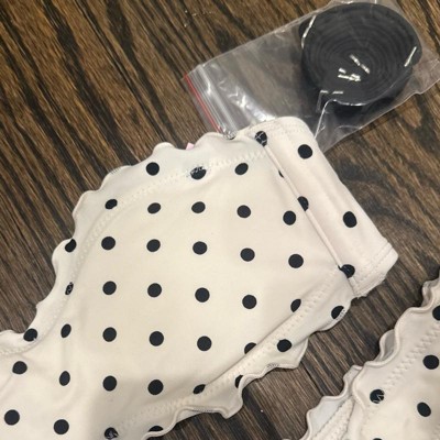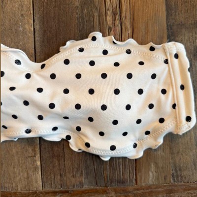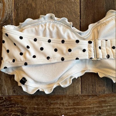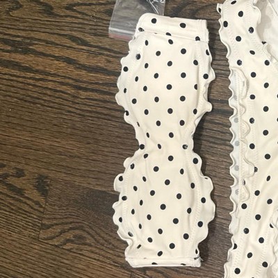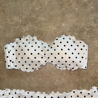 Women's Ruffle Edge Medium Coverage Bandeau Bikini Top - Wild Fable™ Cream/Black Polka Dot XXS