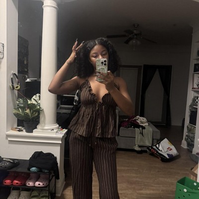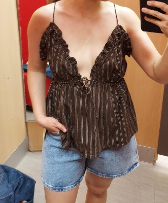 Ruffle triangle cup babydoll tank top from Wild Fable™. Features ruffle-trimmed triangle cups, a front drawstring, a peplum hem and adjustable spaghettis straps for a personalized fit. Crafted from rayon-linen blend fabric for comfortable all-day wear. Tailored in a regular fit with a mid-length silhouette.