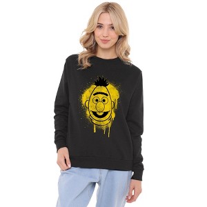 Women's Sesame Street Bert Graffiti Spray Face Crew Sweatshirt, Black, Small