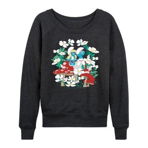 Women's - Smurfs - Nature Lightweight French Terry Wide Neck Long Sleeve Graphic Shirt - 1 of 4