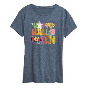 SpongeBob SquarePants - Happy Halloween - Women's Short Sleeve Graphic T-Shirt - Dive into the fun of Bikini Bottom with SpongeBob SquarePants graphic apparel! Featuring colorful designs of SpongeBob, Patrick, Squidward, Sandy, and more, this collection brings the show's quirky humor and unforgettable moments to life. Perfect for fans of all ages, these pieces add a splash of personality to any wardrobe.