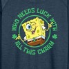 Women's - SpongeBob Squarepants - Who Needs Luck With This Charm Lightweight French Terry Wide Neck Long Sleeve Graphic Shirt