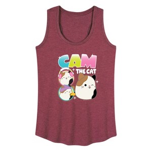 Squishmallows - Cam The Cat - Women's Racerback Tank - Snuggle up in style with graphic apparel featuring officially licensed art from Squishmallows! Show off your favorite ultra-soft plush pals like Cam the Cat, Fifi the Fox, and Malcolm the Mushroom with colorful, cozy designs that bring the cuteness and comfort of the Squishmallows squad to your everyday look.