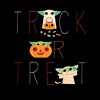 Grogu is all dressed up for Halloween across this fun Men's Tee featuring "Trick or Treat" in Halloween colors.