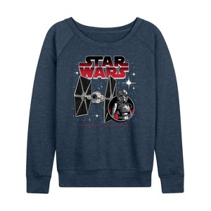 Women's - Star Wars - Tie Fighter And Pilot Lightweight French Terry Wide Neck Long Sleeve Graphic Shirt - 1 of 4