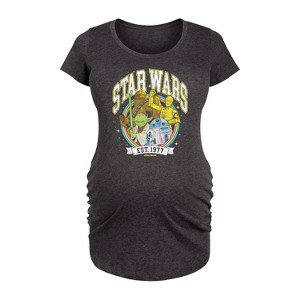Star Wars - Yoda and friends Collegiate - Maternity Scoop Neck Tee - Embark on an epic adventure with our officially licensed Star Wars graphic apparel collection! Celebrate the legendary saga with bold, iconic designs featuring your favorite characters, ships, and moments from a galaxy far, far away. Whether it's the fearless Luke Skywalker, the powerful Darth Vader, the wise Yoda, or the unforgettable Millennium Falcon, each piece captures the magic and excitement of the Star Wars universe. From graphic tees and hoodies to sweatshirts, this collection combines comfort with striking artwork that showcases the timeless appeal of the Star Wars story.