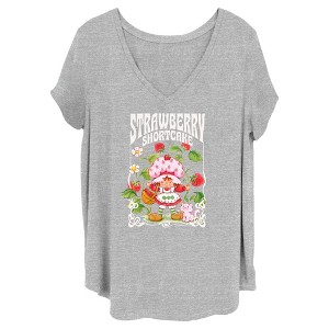 • You'll look sweet enough to eat with this unique juniors' plus size v-neck tee design from Strawberry Shortcake!
