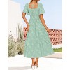 Women‘s Summer Boho Floral Midi Dress Casual Short Sleeve Square Neck Flowy Beach Vacation Long Dress