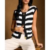 Women's Summer Fall Stripes Cropped Knit Sweater Cardigan Casual Button Down Sleeveless Crochet Sweater Vest Tops with Pockets