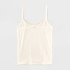 Round-neck tank top from Wild Fable™ designed with lace detailing along the neckline. Features pointelle detailing allover. Made of recycled polyester-rayon fabric with spandex for stretchy comfort all through the day. Lightweight design with spaghetti straps help create a breezy look.