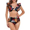 Women's V Neck Bikini Set Two Piece Ruffled Top Bathing Suits High Waisted Bikini Bottom U Back Swimwear