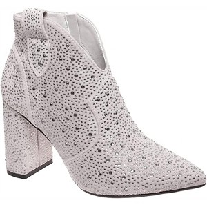 Say hello to the perfect, most versatile boot. The ankle height makes this style easily transition from day to night. Wear them with your favorite skinny jeans and tee for a more laid back look, or pair them with your favorite mini dress and jacket for a night out on the town. Step into the spotlight with the Women's Diva Rhinestone Boots by OLEM, designed for those who love to dazzle. These white ankle booties feature a solid-colored base adorned with full rhinestone detailing and a convenient side zip-up closure. They come with a 3.5-inch heel, ensuring you make an impression while offering comfort that runs true to size. Whether for a night out or a glamorous event, these booties will elevate your ensemble to diva status.