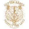 Get ready to head back to the West to watch the Dutton Family endure the dangerous and complicated ordeals of 19th century Montana ranching life in this officially licensed Yellowstone The Wolf Protects Tee! Featuring the words "Dutton Ranch, Protect the Land" printed in yellow and a snarling wolf head in the middle.
