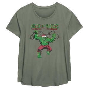 Womens Marvel Hulk Distressed Deck the Halls T Shirt - 1 of 3