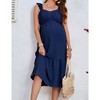 • RUFFLE DESIGN: Casual maternity summer midi dress features v neck, ruffle sleeve, sleeveless, solid color. Tiered hemline design bring a swing and flare look with your walking.