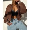 Women's moto biker bomber jacket, long sleeve casual coat, snap button up layers, striped collared and hem, color block shoulder design. The cute track jacket can show your own style