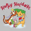 - Wear your Christmas spirit all season long with this women's t-shirt! Featuring Pooh, Tigger, and Piglet carrying Christmas trees through a snowy Hundred Acre Wood under a bold, merry "Happy Holidays" in festive red.