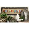 - •Features a brown-finished burlap background and fifteen multi-colored 'Birds on Wire' silhouettes made of wood
