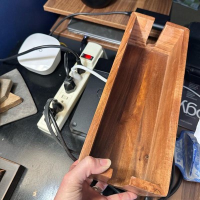 I ordered this cable/power strip box cover for my husband‘s office to help clean up the various cables and power strip that he has sitting on top of his desk. The box looks very nice and high-quality and is something that would be appealing to have sitting on top of a desk. Unfortunately, the Cables that are plugged into my husband’s power strip, have thick cords that stand up pretty high. This caused the lid of this box to not fit on properly, which completely defeats the purpose of the nice looking box.