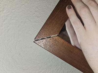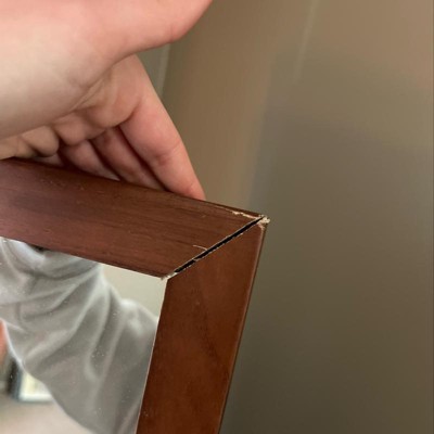 A: The wood frame has a stained walnut finish that complements various decor styles.
