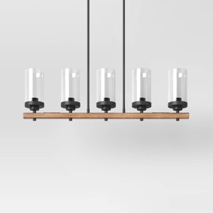 Wood Linear Ceiling Chandelier Wood Tone - Threshold™: Brass Finish, Glass Shades, UL Listed
