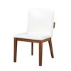 - Stylish Material Fusion: The chairs showcase a sleek walnut-finish hardwood frame, delivering a modern aesthetic with natural warmth. The white glossy PU leather upholstery adds a touch of elegance and shine, creating a sophisticated visual appeal that complements various decor styles.