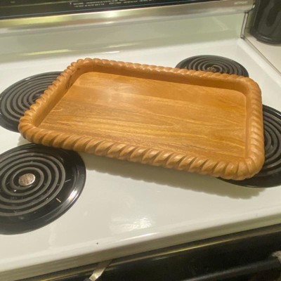 [This review was collected as part of a promotion.] I absolutely love this wooden tray. There are so many different things that you can do with it as it is a nice size. Looking at the sticker on the product it reflects it is a serving tray. This tray can be placed up against a counter as a decoration. You can use it as a serving tray or as a tray in your living room to hold decor. It seems to be quality made with a great detail on the edge. I would definitely recommend purchasing.