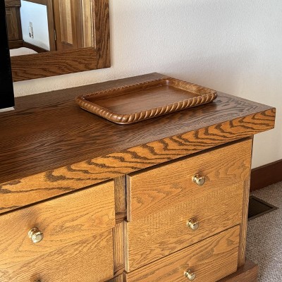 This tray is beautiful! It looks so nice on my counter. It’s well made and I love the braided edging.