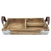 14.5" x 11" Rustic Divided Wood Tray with Leather Handles Brown - Stonebriar Collection