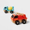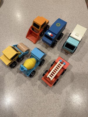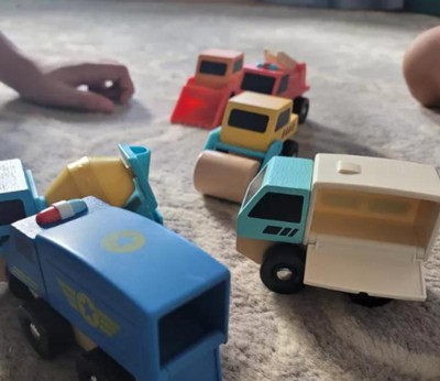 A: The set includes a fire truck, ambulance, cement mixer, steam roller, and more.