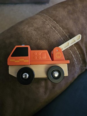 A: The vehicles are made from wood, polypropylene, and ABS (Acrylonitrile Butadiene Styrene).