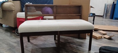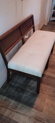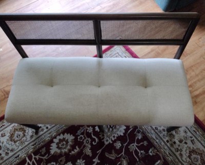 I just love how sturdy & the quality of this Woodspring Can Back Bench is. Some assembly required but very easy to assemble. The seat is well padded to use & the cover is linen feel. Looks great just about anywhere in the house.