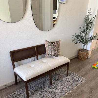 Obsessed with this bench in my entryway! Love that it has a back and it’s comfortable for my guests! Def get this to bring some warmth and character into your space.