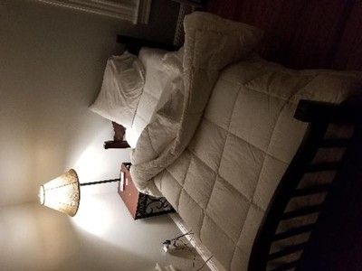 This comforter feels really nice. It is heavy and should be great for winter. It hangs really nice on our queen size guest bed. I’m excited for it to get chilly so we can try it out! The quality is great and it looks beautiful by itself but we will probably put in a duvet cover. I have attached pictures.