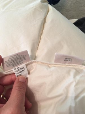 I have the Full/Queen Wool Blend Comforter - Casaluna™ and it is so warm. It fits my bed perfectly and it washes up great. It seems very heavy but does not feel heavy at all! It did not shrink nor stretch when I washed it and it did not wrinkle up like some do. I am very happy with it.