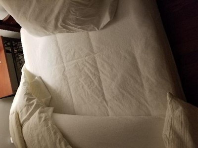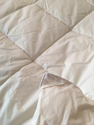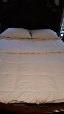 This comforter is just the perfect weight, not too heavy or too light! The off white color goes well with my wall color and other bedroom décor. This comforter lays out nicely on our bed, giving it a classic look. I've purchased other Casaluna bedding in the past and it has always been excellent quality, this comforter is no different! The outer side is made of 100 % cotton, making it feel really soft and comfortable. This is a very nice comforter that I would be proud to recommend!