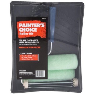 The Wooster Painter's Choice Cage Paint Roller Kit Threaded End contains just what you need for painting. The roller covers can be used with all flat paints. It is perfect for painting drywall, plaster, and ceilings. Tthe roller frame and paint tray help you get started on your next painting project.