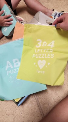 I love this puzzle pack, it comes with 3 different colors and bags to sort them all. There are easier matching ones and harder ones that spell out words. It’s great for learning especially because they’re color coded which makes them easy to keep organized. My son is going into kindergarten this year and they’re perfect for his age.