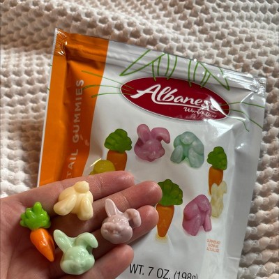 They taste a little different from regular gummy bears—still good, but I prefer the regular gummy taste. They are so cute! The other translucent-colored gummies are Albanese Albunnies Gummies, and they taste just like regular gummies.