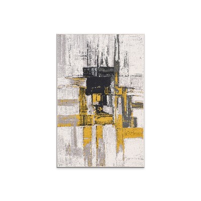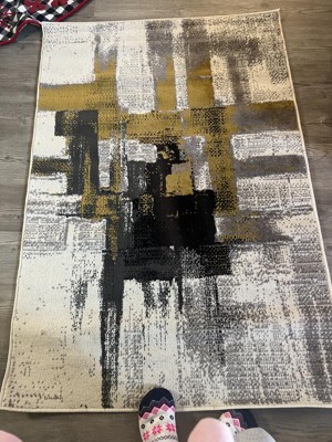 World Rug Gallery Contemporary Modern Abstract Area Rug - Gold 2'7"x4': Stain-Resistant, Pet Friendly, Low Pile