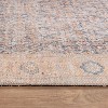 Bring calm elegance to your space with this area rug, featuring a vintage-style all-over pattern in dusty blue, ivory, and beige. The distressed finish offers a timeless, collected look, while the flat-pile surface fits easily under furniture. Made from OEKO-TEX® certified recycled polyester, this rug is machine washable and includes a non-slip backing for everyday ease. Ships folded; creases will flatten naturally within a few days.