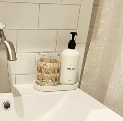 - Woven and glass toothbrush holder lends mixed appeal to your decor